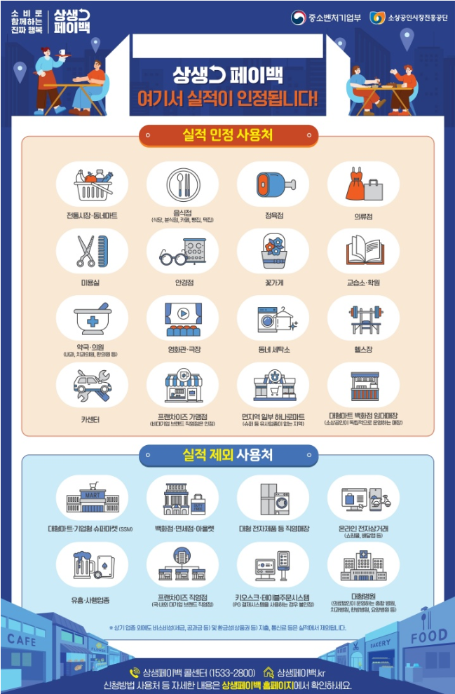 - 전통시장, 동네마트, 식당 등 지역 소상공인 매장 소비가 실적으로 인정되어 매출 증가에 직접적인 도움을 줍니다.