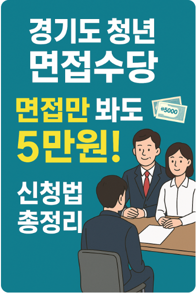 경기도에 사는 18세 이상 39세 이하 청년이 면접을 보면 면접 1건당 5만 원, 최대 10건까지 총 50만 원을 경기도 지역화폐로 지원받는 제도입니다. 2025년에는 1차 모집으로 2025년 6월 18일부터 7월 18일까지 신청 가능합니다.