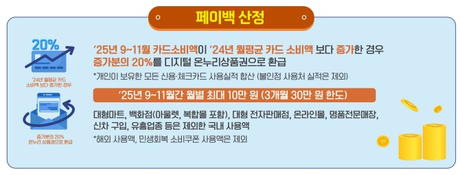 - 환급 지급일: 9월 소비 증가분은 10월 15일, 10월분은 11월 15일, 11월분은 12월 15일에 디지털 온누리상품권으로 순차 지급됩니다.