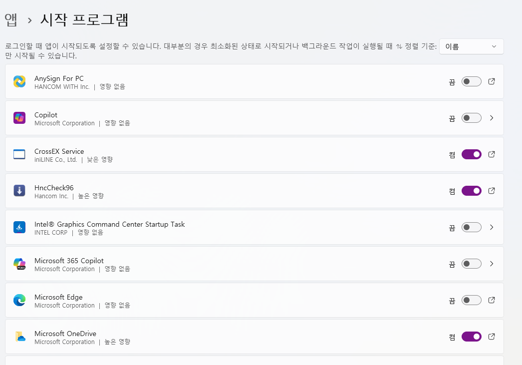 1. 시작 프로그램 정리하기