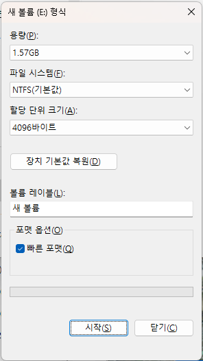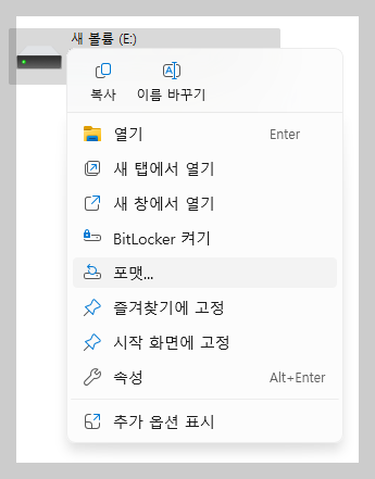 - 탐색기에서 해당 USB 드라이브 우클릭 → 포맷